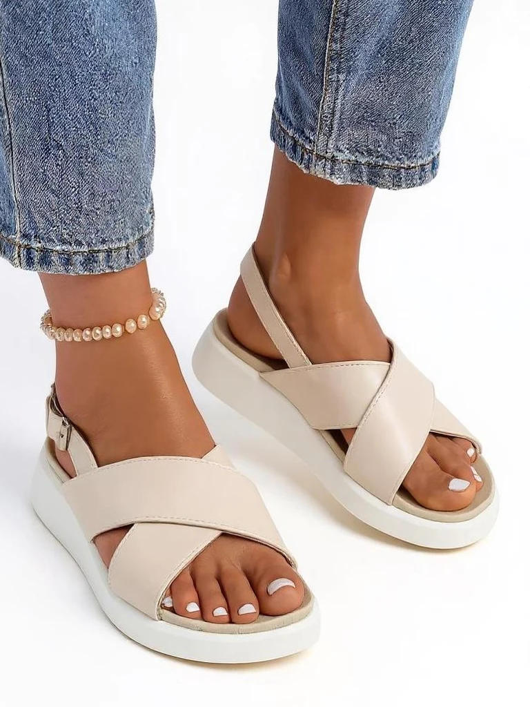 Сандалии Aurelia – это сочетание вдохновения итальянским минимализмом и функциональности современной городской моды. Верх этих сандалий изготовлен из высококачественной эко-кожи – материала, созданного в современном экологическом процессе, свободном от вредных веществ, что подтверждено сертификатом OEKO-TEX. Эко-кожа не только экологична, но и отличается превосходной прочностью, эластичностью и мягкостью, обеспечивая исключительный комфорт при ношении в течение всего дня.Подошва сандалий изготовлена из легкой и нескользящей пены EVA, обеспечивающей устойчивость и отличную амортизацию при каждом шаге. Анатомическая форма стельки адаптируется к естественной форме стопы, сводя к минимуму усталость даже при длительном использовании.Самые важные преимущества сандалий Aurelia – это элегантный, вневременной дизайн и практичность – благодаря регулируемому ремешку на пряжке вы можете точно отрегулировать обувь по ноге, что обеспечит устойчивость и безопасность при ходьбе. Светлый бежевый цвет делает эту модель универсальным дополнением к летнему гардеробу.Стильные возможности стилизации:1. Повседневный стиль – сочетайте сандалии Aurelia с воздушным льняным платьем и большой сумкой-шоппером для повседневных выходов.2. Городской шик – сочетайте их с белыми широкими брюками и рубашкой оверсайз, дополняя образ минималистичными украшениями.3. Пляжный образ – носите с шортами, топом на бретелях и шляпой для пляжных или прогулочных вылазок.Советы по уходу: чистите сандалии влажной тряпкой с мягким мылом; избегайте сильного намокания и длительного воздействия солнца. Храните их в проветриваемом месте вдали от источников тепла. Не забывайте регулярно проверять ремешок и пряжку и избегать контакта с острыми предметами.Современные тенденции в моде подчеркивают минимализм, комфорт и экологическое сознание – сандалии Aurelia прекрасно вписываются в эти направления, будучи не только практичными, но и модными и выразительными. Идеально подходят для лета, работы, прогулок, поездок или повседневных выходов в город.
