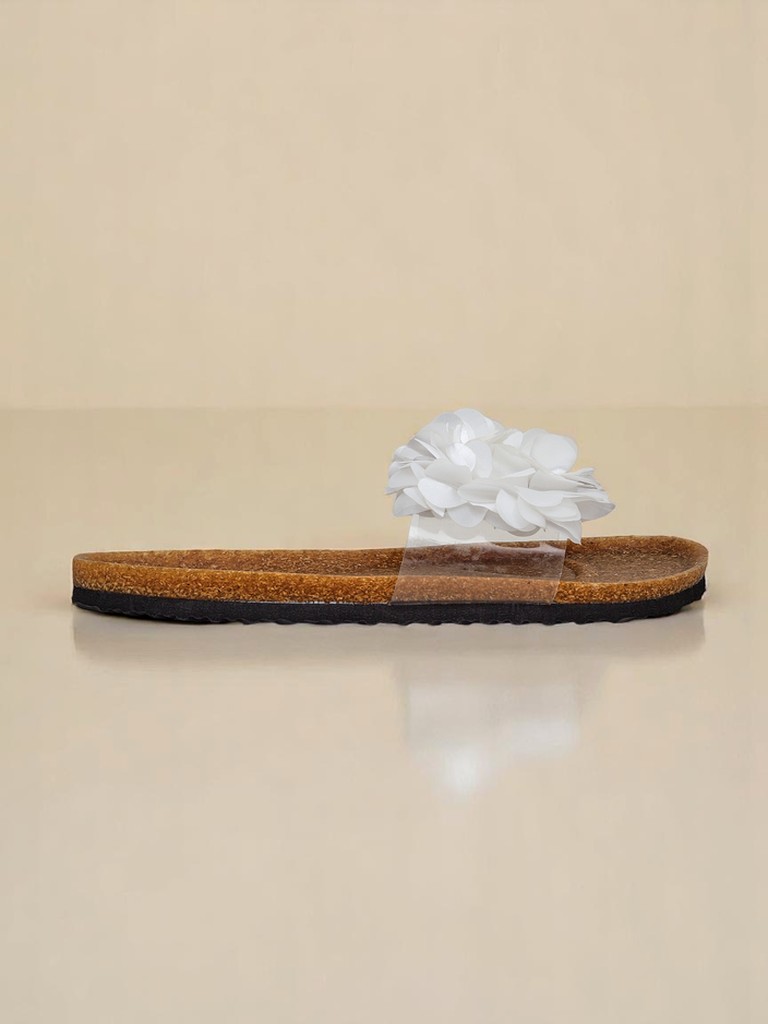 • Очаровательные шлепанцы с плоской резиновой подошвой и декоративными цветочками на ремешке. Идеальны для лета – легкие, удобные и женственные. Добавят очарования любому образу.