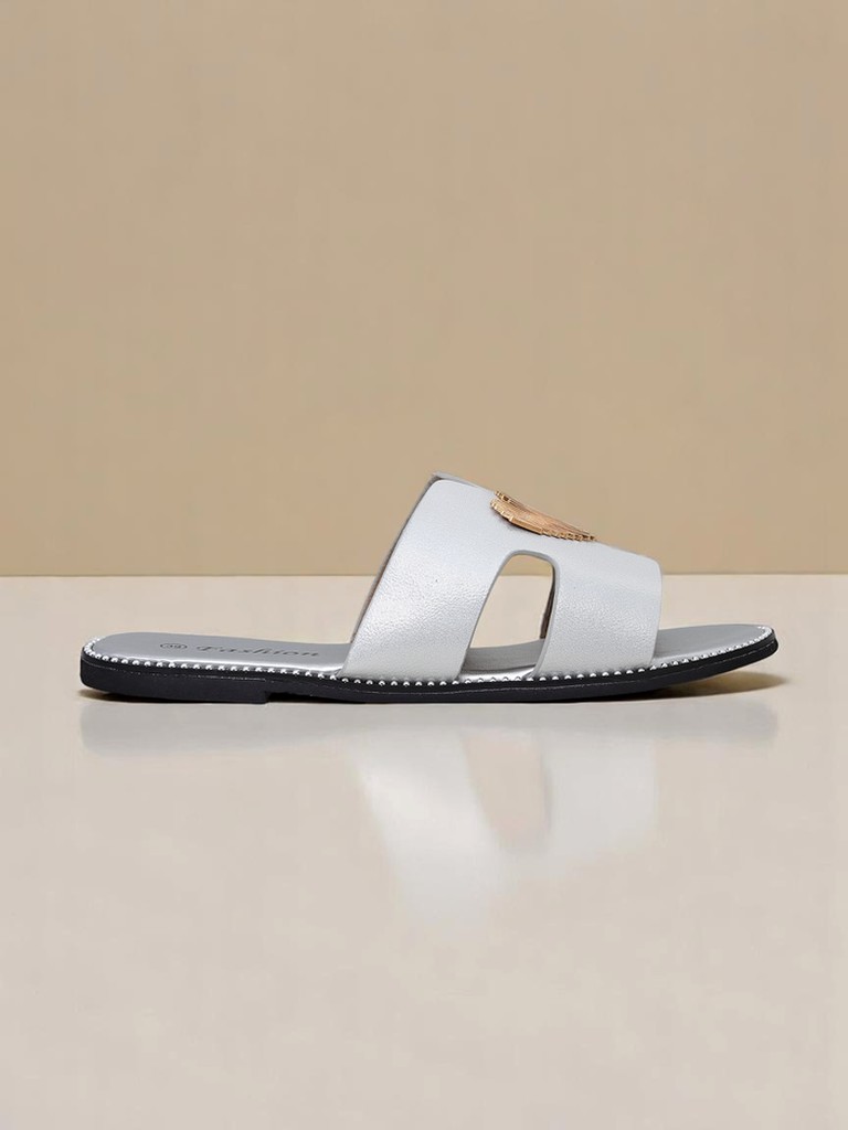 - Шлепанцы из экокожи на плоской подошве с золотым украшением в форме сердца. Стиль и комфорт в одном — идеально подходят для лета, прогулок по городу и легких, женственных образов.