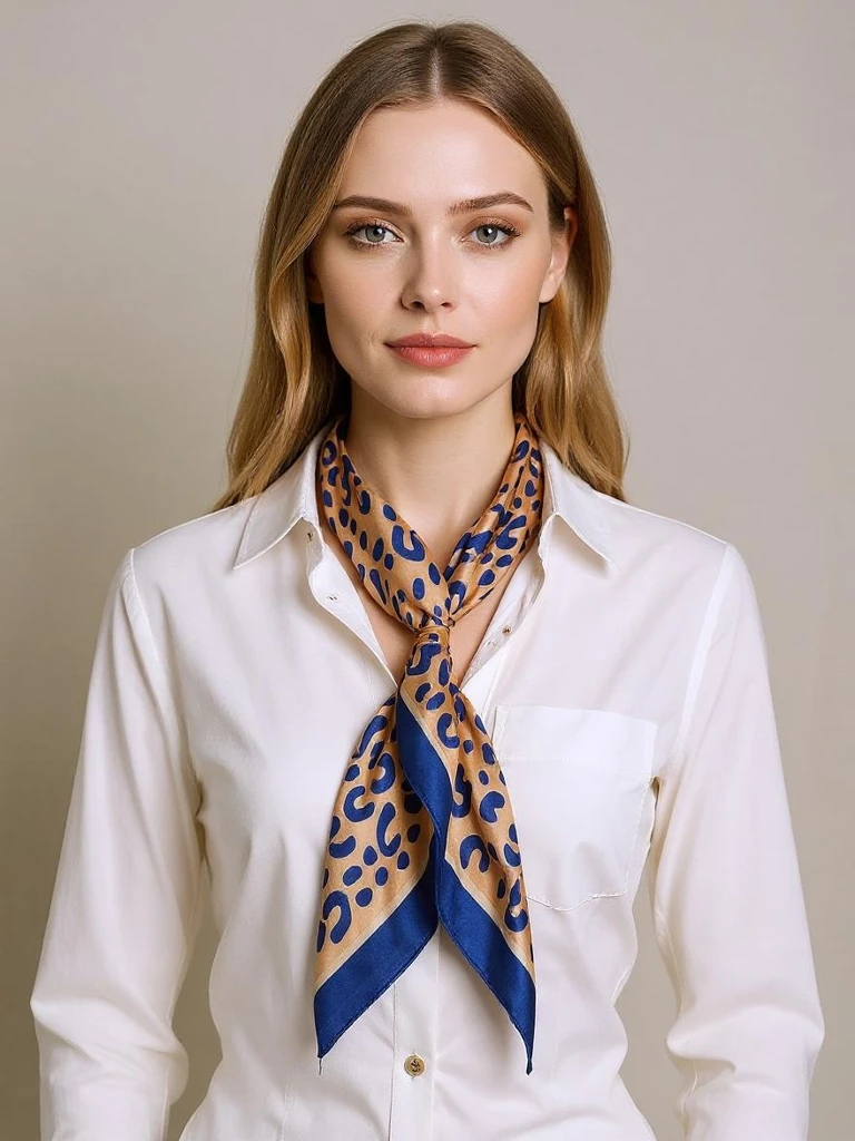 Женский платок Apollonia – это изысканный аксессуар, который идеально сочетает в себе последние тенденции с удобством повседневного использования. Изготовленный из 100% высококачественного полиэстера, платок отличается приятной на ощупь фактурой, мягкостью и нежным блеском ткани. В процессе производства используются передовые технологии ткачества, обеспечивающие стойкость цветов, устойчивость к скатыванию и деформации. Платок имеет сертификат OEKO-TEX, что является гарантией безопасности для кожи.Узор, напоминающий леопардовый принт в бежевых тонах с черными и красными акцентами, – это дань уважения самым свежим мировым тенденциям. Этот динамичный мотив придает характер любому образу. Платок Apollonia прекрасно сочетается как с классическими, так и с повседневными комплектами, добавляя легкости и немного экстравагантности.Преимущества выбора платка Apollonia – это не только вневременной дизайн, но и комфорт ношения в течение всего дня – легкий и дышащий полиэстер легко ложится на шею и не вызывает раздражения. Его размеры (69 см в длину, 66 см в ширину) позволяют использовать множество способов стилизации: 1. Завяжите как классический платок под шеей к элегантной белой рубашке и пиджаку – идеально для работы или деловой встречи. 2. Оберните вокруг головы как повязку или завяжите на волосах – отлично подходит для повседневных образов с джинсами и футболкой. 3. Завяжите на ручке сумки или в качестве украшения браслета – придаст интересный акцент любому образу.Чтобы сохранить отличный внешний вид и долговечность платка, рекомендуется ручная стирка в теплой воде с мягким моющим средством и сушка на плоской поверхности. Гладить при низкой температуре с изнаночной стороны. Полиэстер не впитывает запахи и быстро сохнет, поэтому платок идеально подходит для поездок и повседневного использования.Актуальные модные животные принты и нейтральные цвета, такие как бежевый и черный, подчеркивают универсальность продукта и позволяют сочетать его с различными случаями и стилями. Платок Apollonia – это выбор как для поклонниц классики, так и для более смелых трендов!