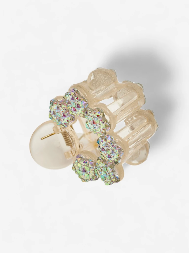 Заколка для волос Aurora Flora – это уникальный аксессуар, который восхищает элегантностью и блеском. Изготовленная из высококачественного прозрачного пластика (без BPA), она имеет деликатную отделку и высокую прочность, что делает ее идеальной для повседневного использования. Декоративная часть состоит из цветов, покрытых мерцающими акриловыми кристаллами в стиле aurora borealis, которые эффектно отражают свет и привлекают внимание. Пружинный механизм обеспечивает быструю и надежную фиксацию прически, а сильный захват обеспечивает стабильность даже во время интенсивных движений.