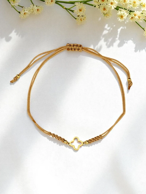 - Регулируемый браслет на шнурке в морском стиле, украшенный изящным золотистым шармом. Лёгкий и элегантный, идеально подходит для летних дней. Придаёт любому образу золотое сияние, сочетая атмосферу морского побережья с ноткой роскоши. Идеален для пляжа и
