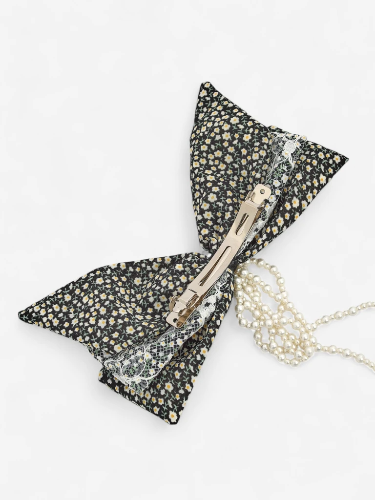 Bellafiora – это элегантная заколка для волос, вдохновленная вневременной средиземноморской эстетикой, которая восхищает своим романтичным видом. Она изготовлена из высококачественной хлопчатобумажной ткани с мелким цветочным узором и нежного кружева, которое подчеркивает легкость и девичий характер изделия. Центральным элементом украшения являются нити мелкого синтетического жемчуга, которые придают заколке уникальный и роскошный вид. Материалы, используемые для производства, были отобраны с учетом долговечности и комфорта ношения – ткань имеет сертификат OEKO-TEX®, что гарантирует отсутствие вредных для кожи и волос веществ. Механизм заколки изготовлен из нержавеющей стали, устойчив к истиранию и обеспечивает стабильное удержание прически в течение всего дня.