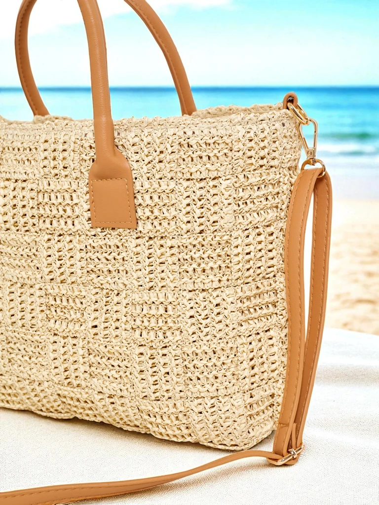 - Стильная соломенная сумка с одним отделением и карманом, застёгивается на молнию. Лёгкая и вместительная, идеально подходит для летних дней. Отлично сочетается с повседневными образами, обеспечивает комфорт и порядок, сохраняя при этом модный, отпускной ш