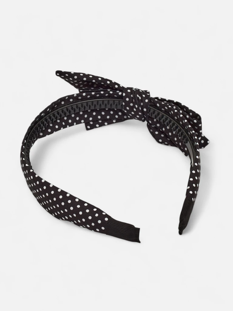 • Стильная женская повязка в горошек с очаровательным бантиком. Женственная и полная изящества, идеально подходит для повседневных и романтических образов. Изготовлена из мягкого материала, удобна в ношении и тонко подчеркивает красоту.