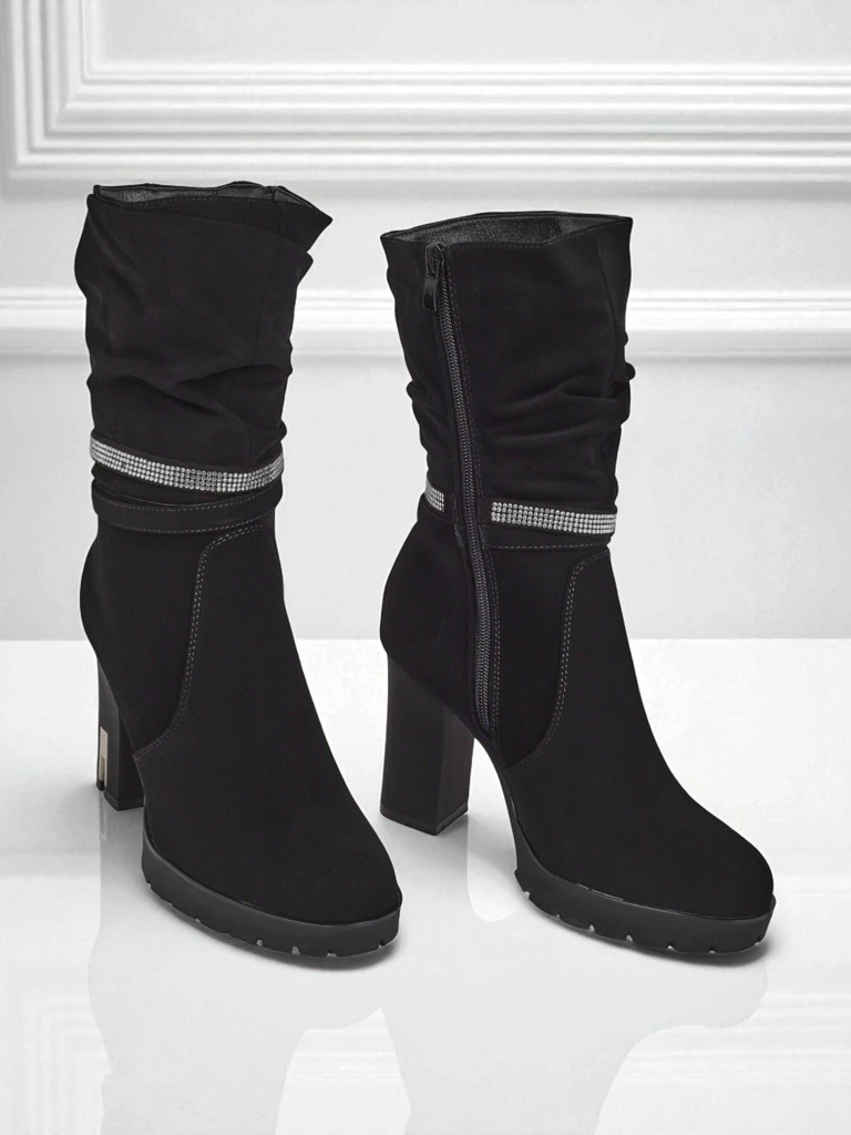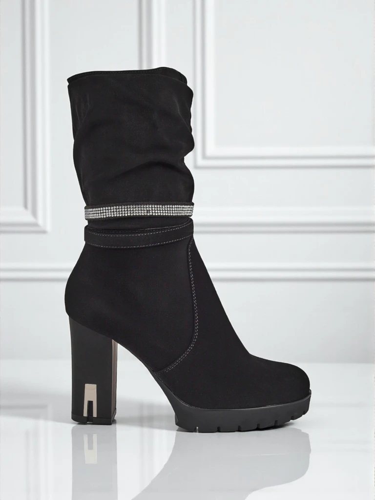 - Женские ботинки - идеальное решение для прохладных дней. Обувь изготовлена из матовой экокожи и наполнена нежным мехом. Модель украшена цирконами, застегивается на молнию, с круглым носком. Отличное дополнение к вашим повседневным нарядам!