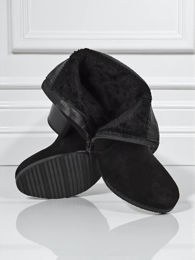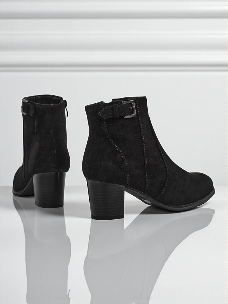 - Превосходные женские ботильоны на каблуке, выполненные из эко-замши. Внутренняя часть выполнена из нежного меха. Модель застегивается на молнию. Имеют декоративные пряжки. Идеально подходят для осенних образов!