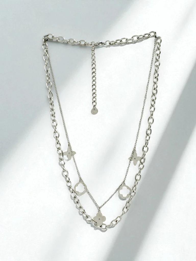 • Серебряное колье Florentia Stella с двойной цепочкой и подвесками – идеально подходит к любому стилю.
