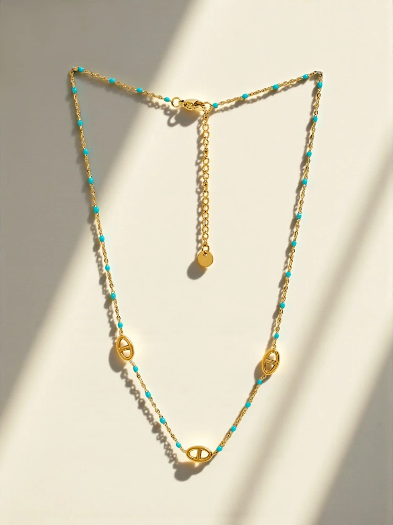 - Золотое колье с синими бусинами Aurelia Kyanos – вневременное, стильное украшение.