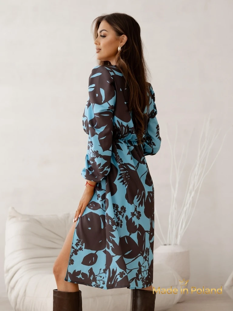 Sukienka Afrodyta Blu Oceano – niebieska midi, długie rękawy, klasyczny styl