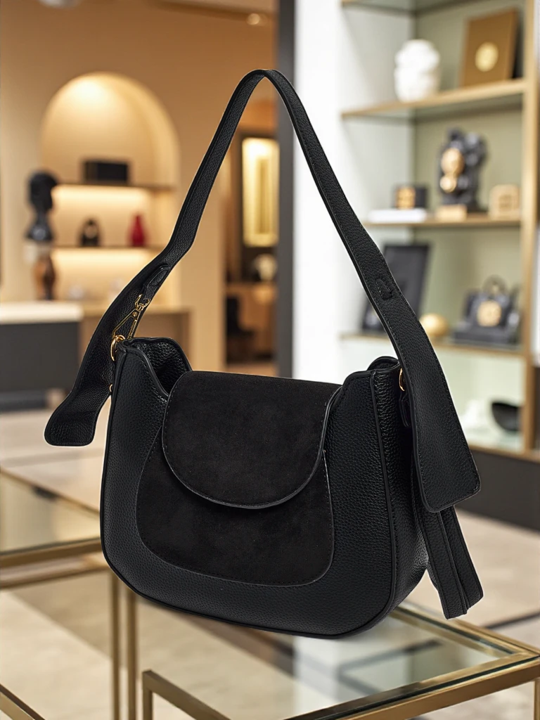 • Маленькая сумочка из экокожи и вставкой из экозамши. 1 отделение, регулируемый ремешок обеспечивают удобство и стиль. Идеальна для выхода в свет – компактная форма, которая привлекает внимание.