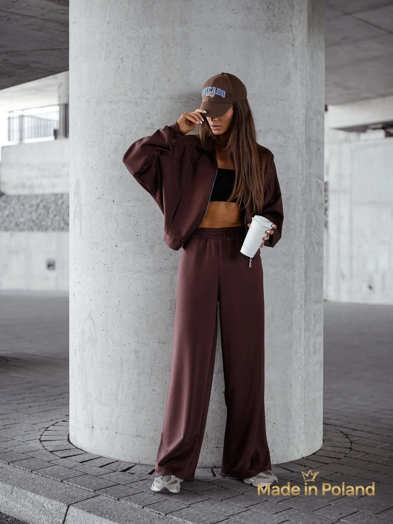 - Женский спортивный костюм, выполненный из приятного вискозного материала. Толстовка на молнии. Длинные, широкие брюки с резинкой на талии и штанинах, с 2 карманами. Почувствуйте стиль в этом великолепном комплекте!