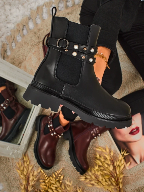 Тренды: Сочетание массивной, функциональной подошвы с нежным жемчугом вписывается в актуальный тренд сочетания элементов utility с женственными дополнениями. Ботинки типа Chelsea по-прежнему являются модным сезонным выбором, а декоративные детали придают им уникальный характер.