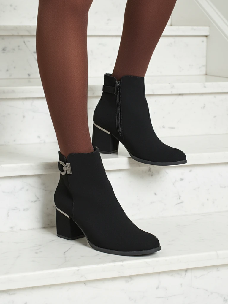 • Удобные ботильоны на каблуке-столбике, выполненные из матовой экокожи. Модель застегивается на молнию. Идеальный выбор на осень!