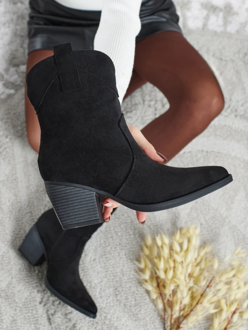 - Ботфорты в стиле ковбойских сапог на каблуке, выполненные из эко-замши. Тканевая стелька, застегиваются на молнию. Подходят ко многим женственным образам!