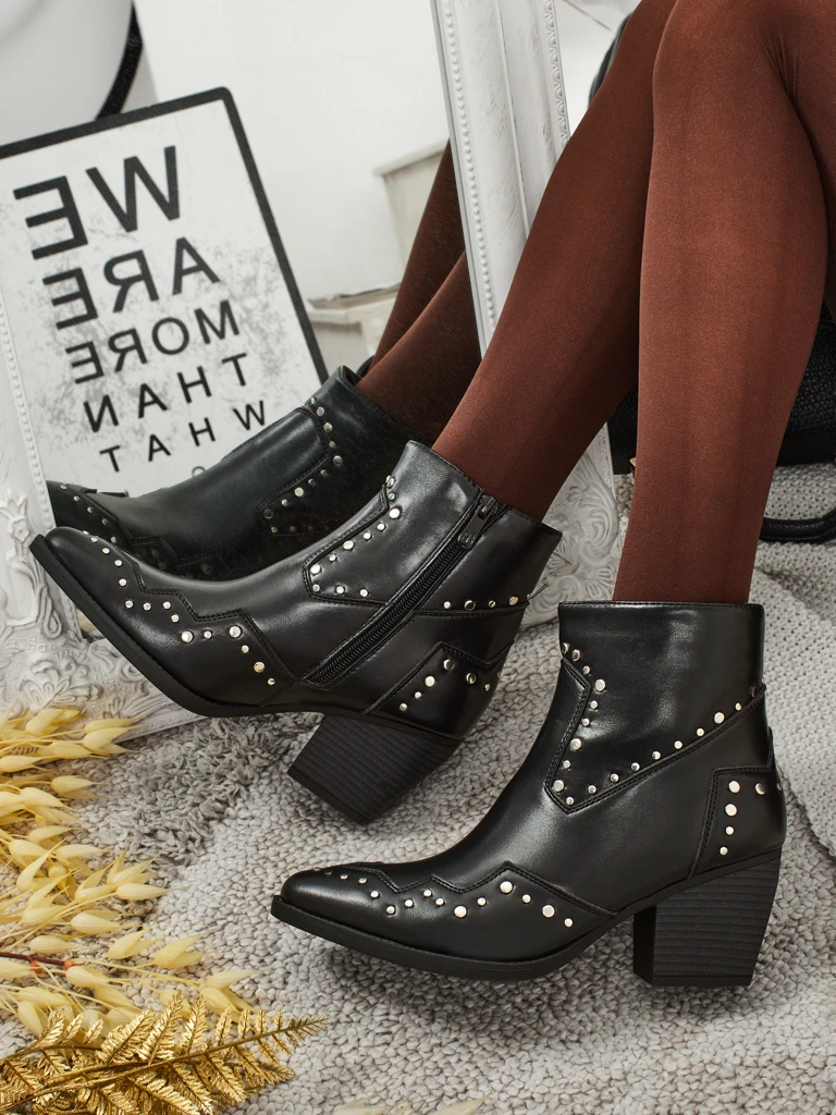 Женские ковбойские сапоги на каблуке с заклепками Glaciere