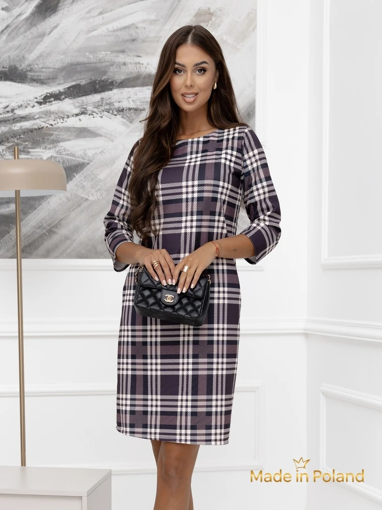 • Женское мини-платье. Модель с рукавами 3/4 и круглым вырезом. Украшено клетчатым узором, есть карманы. Обязательно должно быть в вашем гардеробе!
