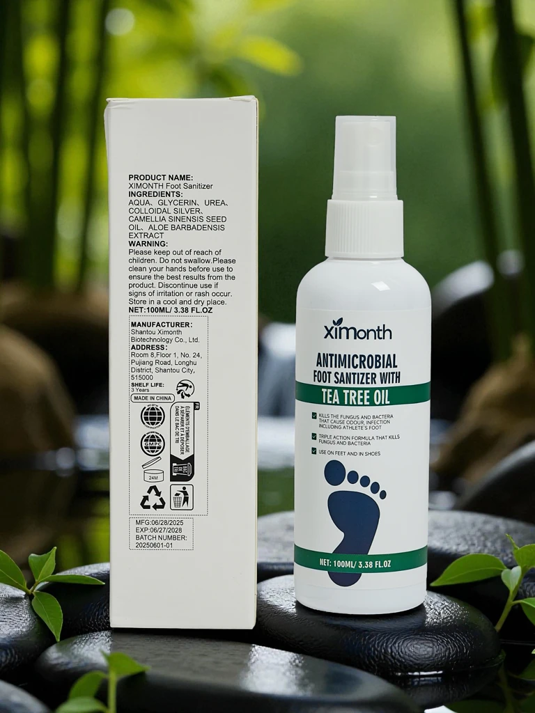 Ximonth Antymikrobowy Spray do Stóp z Olejkiem Drzewa Herbacianego to produkt wysokiej jakości, który został stworzony z myślą o skutecznym zwalczaniu bakterii i grzybów. Nasza formuła zawiera naturalny olejek drzewa herbacianego, znany ze swoich właściwości antybakteryjnych i przeciwgrzybiczych, wspomagany przez kolloidowe srebro oraz inne składniki, takie jak glicerol, mocznik i ekstrakt z aloesu. Produkcja odbywa się zgodnie z rygorystycznymi normami jakości, co zapewnia bezpieczeństwo i skuteczność działania.