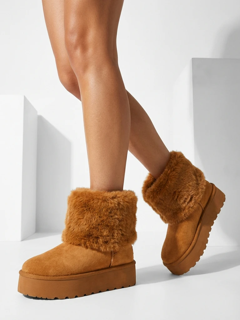 - Отличные женские зимние ботинки-снегоходы на толстой платформе. Верх выполнен из эко-замши, внутри утеплены мехом. Идеальная база для зимы!