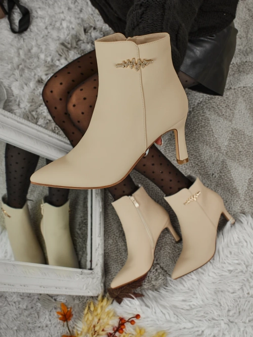 Botki Eleganza Zephyr to idealne połączenie elegancji i nowoczesności, które odpowiedzą na potrzeby każdego moda. Wykonane z wysokiej jakości, miękkiej skóry ekologicznej, te botki są nie tylko stylowe, ale i przyjazne dla środowiska. Dodatkowo, zastosowana technologia produkcji zapewnia trwałość i komfort użytkowania. Dopełnieniem ich wyjątkowości jest złoty akcent, który przyciąga wzrok i dodaje szyku. W skład botków wchodzi starannie dobrany materiał, który gwarantuje wygodę oraz odpowiednią wentylację stopy. Dzięki subtelnym, zaokrąglonym noskom i słupkowym obcasom, botki te są nie tylko modne, ale również wygodne nawet podczas długich godzin noszenia. Podczas noszenia botków Eleganza Zephyr poczujesz się pewnie i stylowo. Ich elegancki wygląd sprawia, że pasują do różnych stylizacji. Oto kilka propozycji, jak je zestawić: 1. Połącz botki z jeansami i białą koszulą, aby stworzyć casualowy, ale elegancki look. 2. Zestaw je z małą czarną sukienką, aby podkreślić swoją kobiecość i wyjątkowy styl. 3. Świetnie sprawdzą się w połączeniu ze spódnicą ołówkową i marynarką – idealne na spotkania biznesowe. Aby zapewnić długotrwałość i estetykę obuwia, zaleca się regularne czyszczenie botków przy użyciu wilgotnej ściereczki oraz właściwe przechowywanie w chłodnym i suchym miejscu. Pamiętaj również, aby unikać kontaktu z wodą, co pozwoli zachować ich pierwotny kształt oraz kolor. Aktualne trendy mody wskazują na rosnącą popularność platform i botków na słupku, co czyni model Eleganza Zephyr doskonałym wyborem na każdą porę roku. Wybierz botki, które podkreślą Twój styl i charakter!