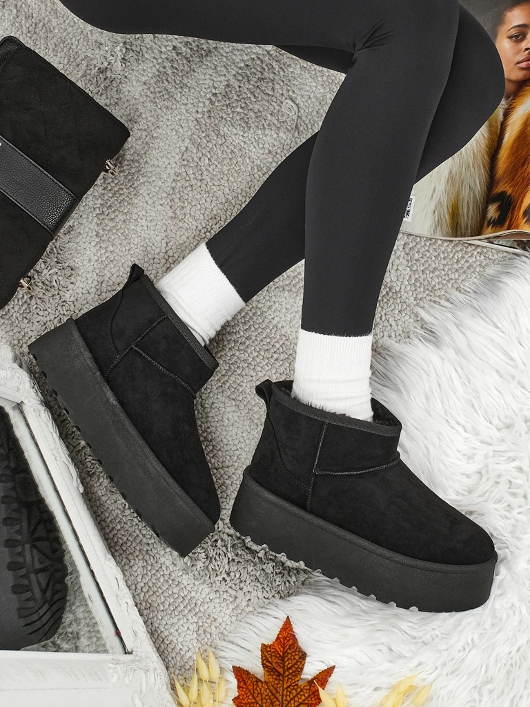 - Отличные женские зимние ботинки-снегоходы на толстой платформе. Верх выполнен из эко-замши, внутри утеплены мехом. Идеальная база для зимы!