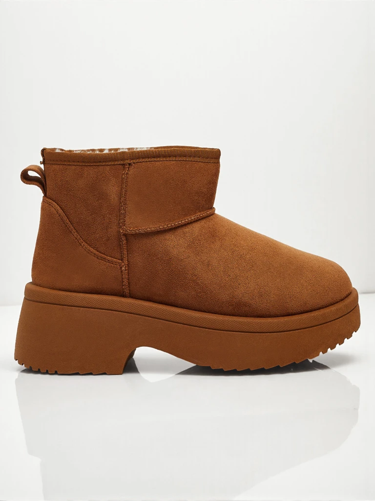 - Отличные женские зимние ботинки-снегоходы на толстой платформе. Верх выполнен из эко-замши, внутренняя часть утеплена мехом. Идеальная база на зиму!