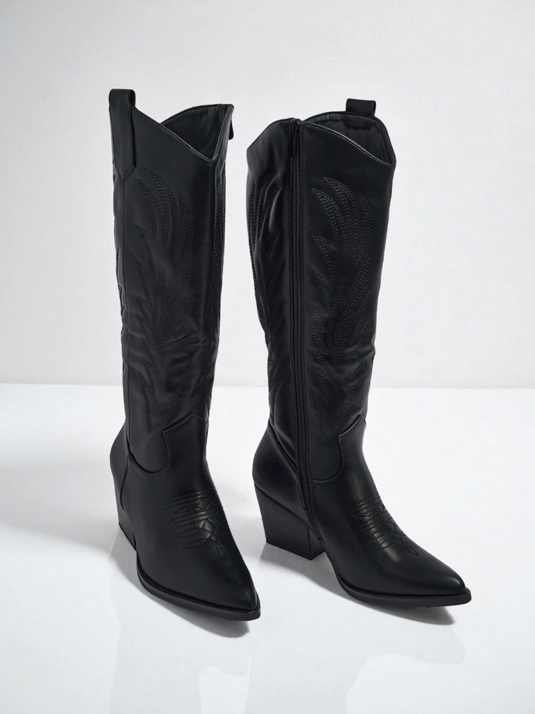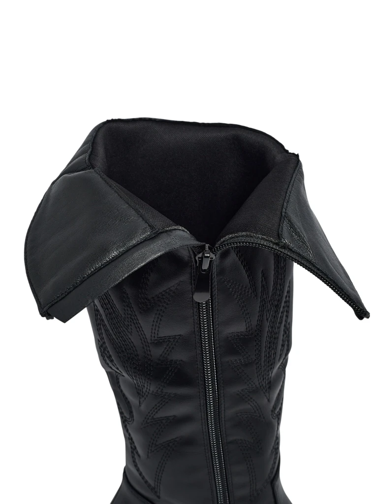 • Ковбойские сапоги на каблуке, выполненные из замшевой экологической кожи. Обувь застегивается на молнию и имеет тканевую подкладку. Подходят ко многим женским стилям!