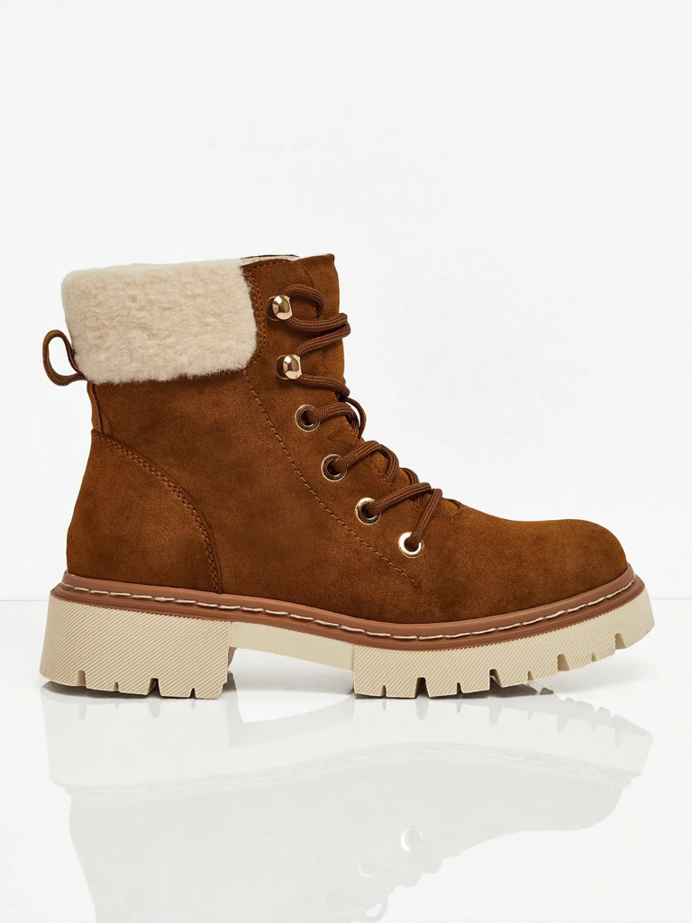 - Женские трекинговые ботинки-траперы со шнуровкой. Материал верха - замшевая экокожа. Внутри утеплены нежным мехом. Идеально подходят для зимнего времени!