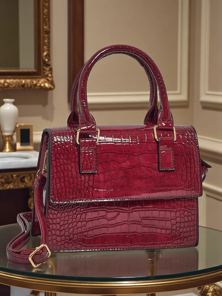- Маленькая сумочка с тиснением, изготовленная из комбинации лакированной экокожи и экозамши. 1 отделение, 2 кармана, застежка-молния и съемный регулируемый ремешок. Стиль и функциональность в идеальном исполнении.