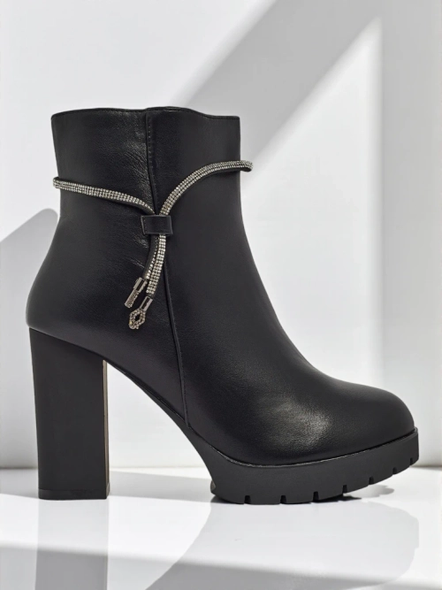 - Удобные ботильоны на каблуке, выполненные из экокожи. Модель застегивается на молнию. Модель слегка утеплена мехом, имеет декоративную молнию с цирконами. Идеальный выбор на осень!