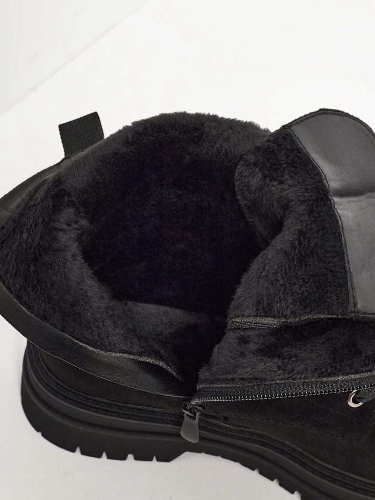 - Женские ботинки-рабочие – это уникальная обувь, сочетающая в себе стиль и комфорт. Изготовлены из эко-замши, утеплены нежным мехом. Модель на шнуровке и с застежкой-молнией. Толстая подошва добавляет комфорта на каждом шагу.