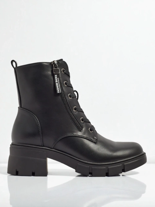 • Женские ботинки из экокожи с молнией, шнуровкой и круглым носком, дополнительно утепленные мехом – современность, удобство и стиль в одном.