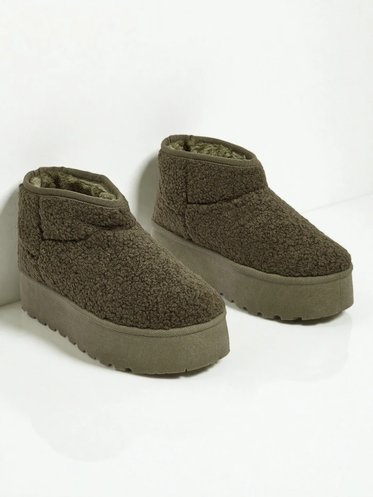 - Отличные женские зимние ботинки-снегоходы на толстой платформе. Верх выполнен из ткани под овчину, внутри утеплены мехом. Идеальная база на зиму!