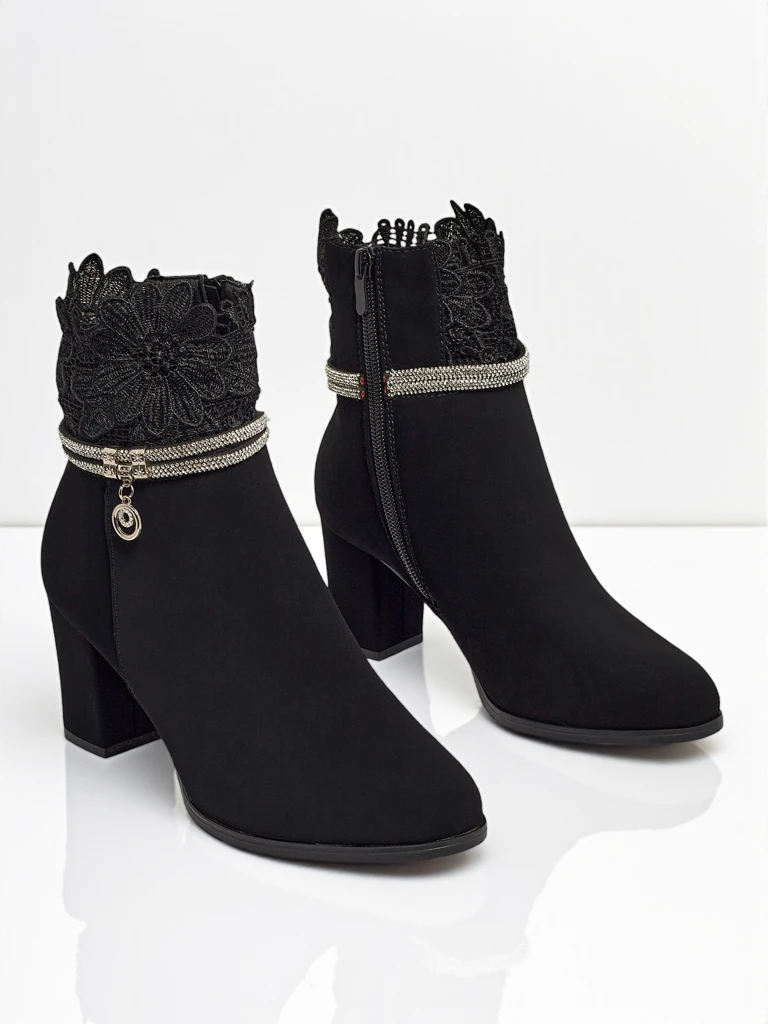Женские ботильоны из эко-кожи на каблуке-столбике с кружевом Kastrelle