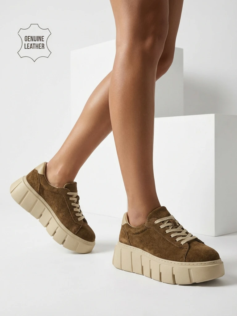 - Стильные женские кроссовки на платформе – идеальны для женщин, ценящих комфорт и модный внешний вид. Натуральная замшевая кожа, шнуровка, легкие и очень удобные.