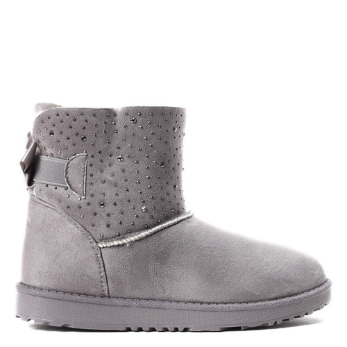 • Rewelacyjne mukluki z grubym futerkiem od środka zapewnią Ci ciepło i komfort w chłodniejsze dni. Cholewka z przodu ozdobiona dżetami, a z tyłu urocza kokardka. Solidnie wykonane i bardzo wygodne. Nadają się do wielu stylizacji.