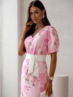 Royalfashion moteriškas kelių ilgio suknelė su trumpo rankovėmis ir rožių raiščiu