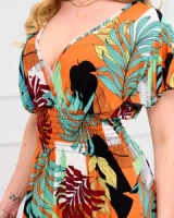 Женское платье длиной до колена с принтом оранжевого цвета - Одежда